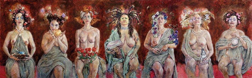 My art and theatre changed after the birth of my children. It made me feel very intensely (or maybe it was hormones). I present the magick in every day-ness in my work. The roller-coaster fuels my brush. Leading up to and after my divorce, many works were a visual diary of sorts, I had no voice, only on the canvas.