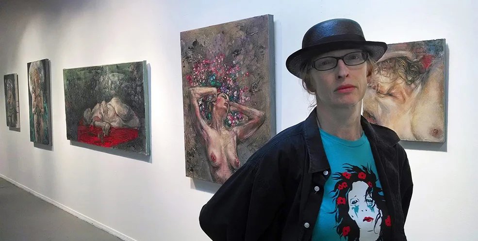 I met T. Collins Logan at an art show I was attending with my mother. We both had work in the exhibit -- his photograph and my painting. He approached me because he wrote a poem about my painting. We became friends and he started teaching a mysticism class at First UU. When we started dating, he read me poetry, including his own works and Hafiz -- both of which inspired several paintings and continued to have a strong influence on my work for the following years. He also helped me change the perception I had of of myself from starving artist to a professional. Currently we are collaborating on the Incognito Witch short films and a book.
